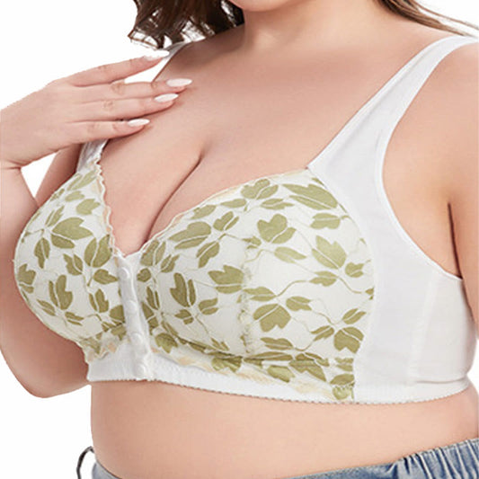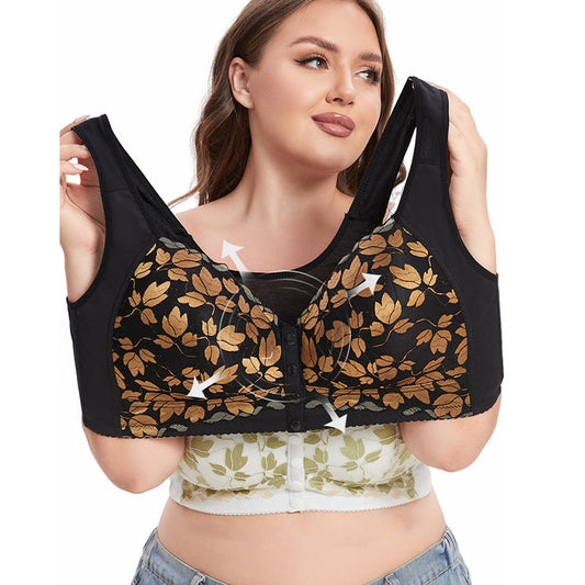 Soutien-gorge sans armatures à fermeture frontale et motif floral grande taille