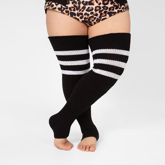 Chaussettes de compression hautes à rayures et bout ouvert, grande taille