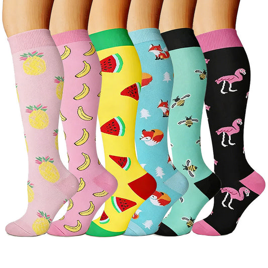 Chaussettes de compression hautes motif fruits et animaux (6 paires)