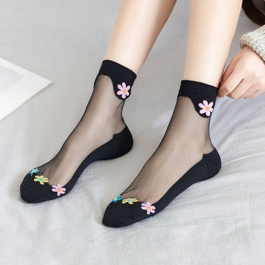 Chaussettes courtes en soie glacée à fleurs (9 paires)
