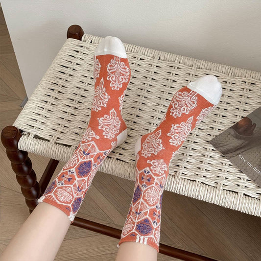 Chaussettes rétro à fleurs sculptées (5 paires)