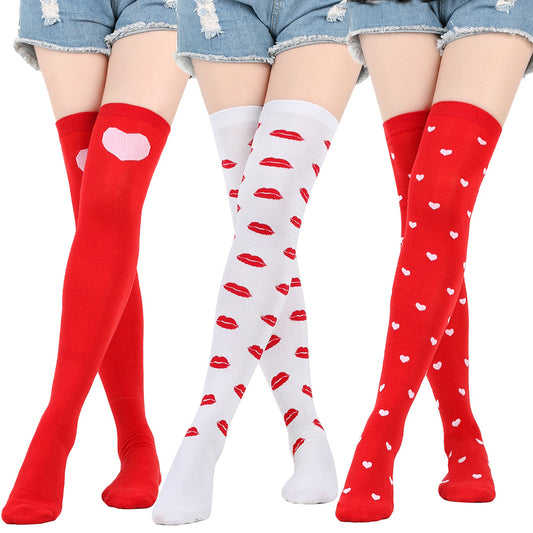Chaussettes hautes de fête à lèvres rouges (5 paires)