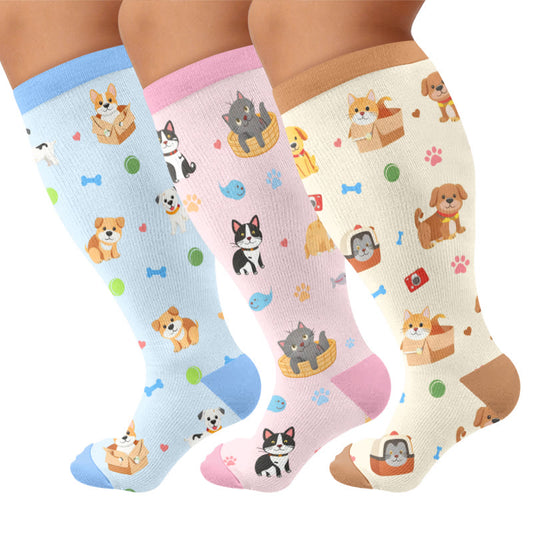 Chaussettes de compression grandes tailles à motifs d'animaux mignons