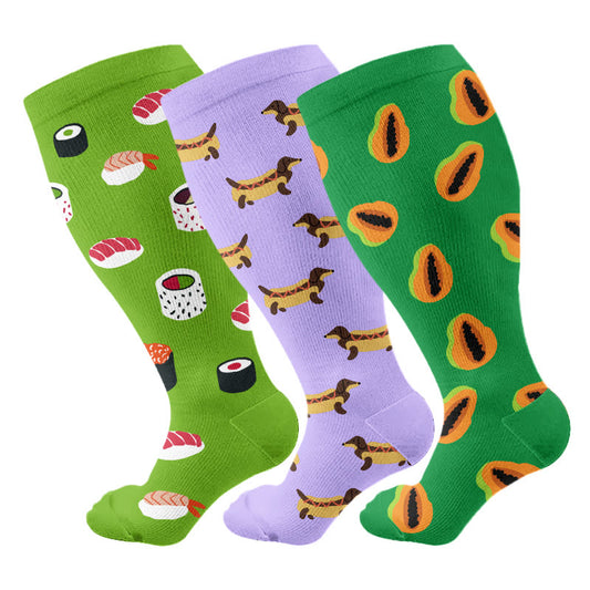 Chaussettes de compression grande taille Sushi Dachshund Papaye (3 paires)
