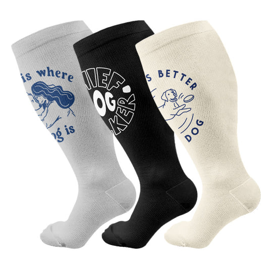 Chaussettes de compression grande taille pour amoureux des chiens (3 paires)