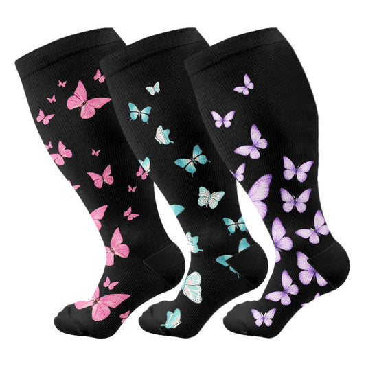 Chaussettes de compression à imprimé papillon grande taille (3 paires)