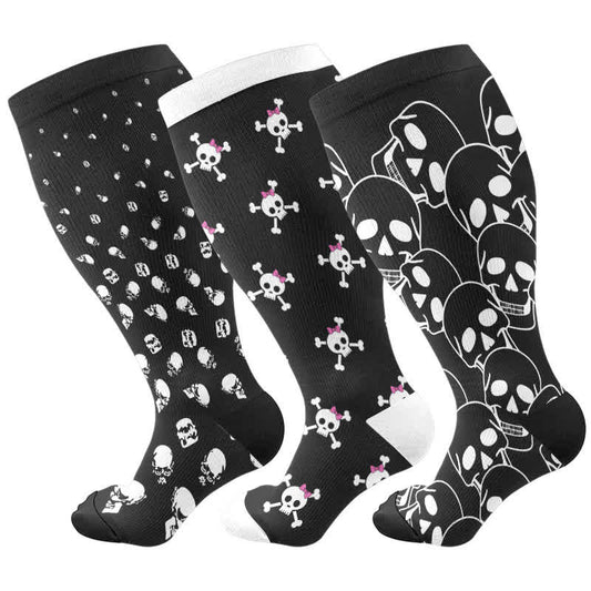 Chaussettes de compression grande taille à imprimé tête de mort pour Halloween (3 paires)