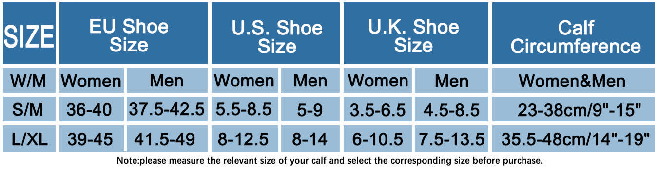 Lors de l’achat de chaussettes de compression, choisissez la bonne taille en fonction des mesures de votre jambe et comparez-les au tableau des tailles. Cela garantit que les chaussettes exercent une compression optimale sans être ni trop serrées ni trop lâches.