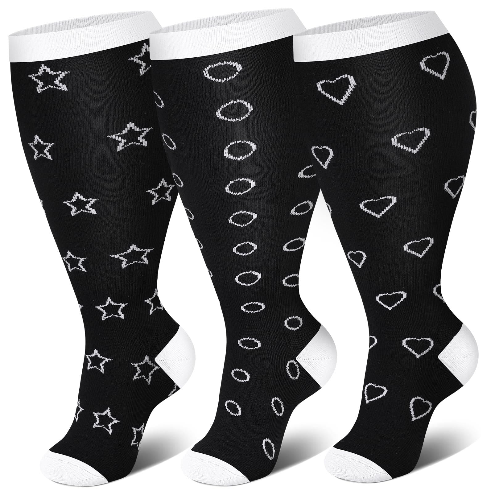 Chaussettes de compression grande taille motif cœur et étoile (3 paires)