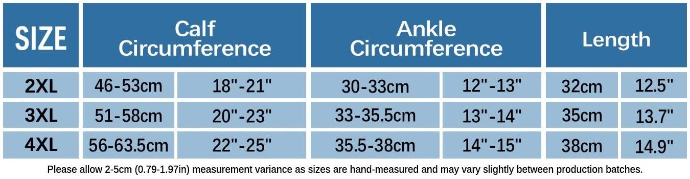 Lors de l’achat de chaussettes de compression, choisissez la bonne taille en fonction des mesures de votre jambe et comparez-les au tableau des tailles. Cela garantit que les chaussettes exercent une compression optimale sans être ni trop serrées ni trop lâches.