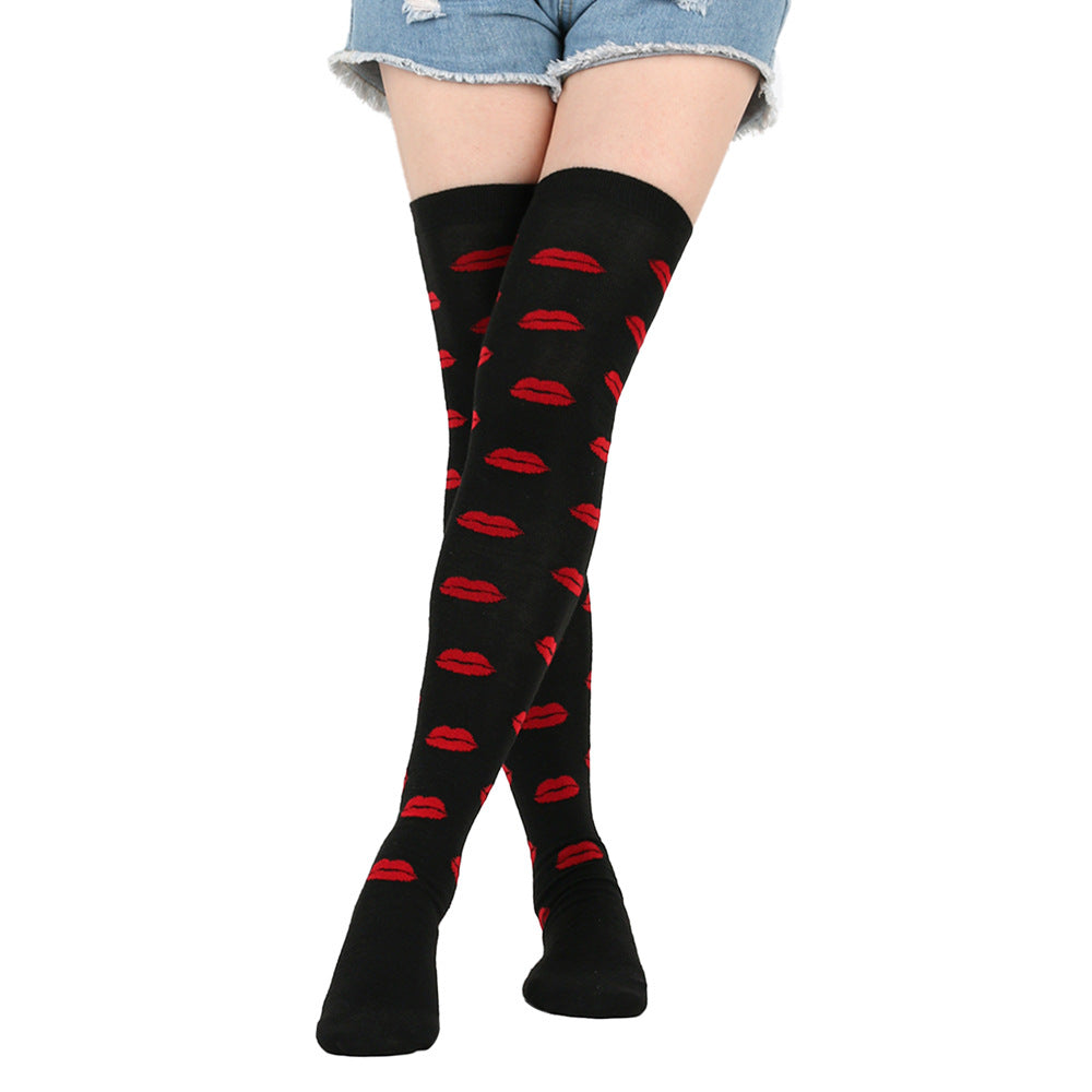 Chaussettes hautes de fête à lèvres rouges (5 paires)