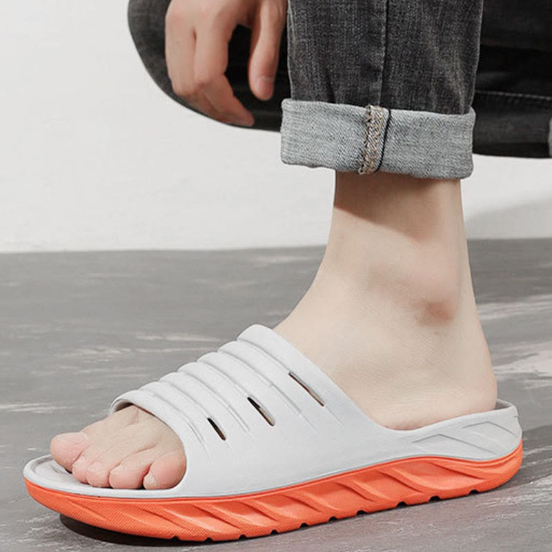 - Conception antidérapante : la semelle est dotée de motifs antidérapants, garantissant une sécurité accrue sur sol mouillé. Ce design antidérapant distinctif prévient efficacement les glissades et offre un maintien sûr à vos pieds lorsque vous vous déplacez librement dans des environnements comme la salle de bain ou la piscine.
