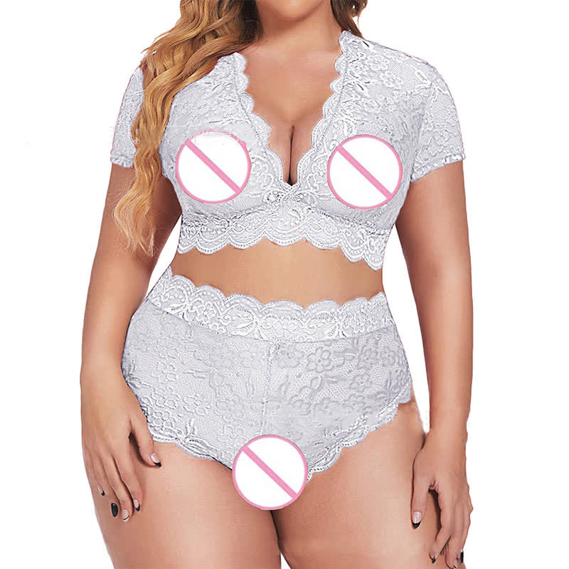 Ensemble soutien-gorge et culotte sexy en dentelle transparente grande taille